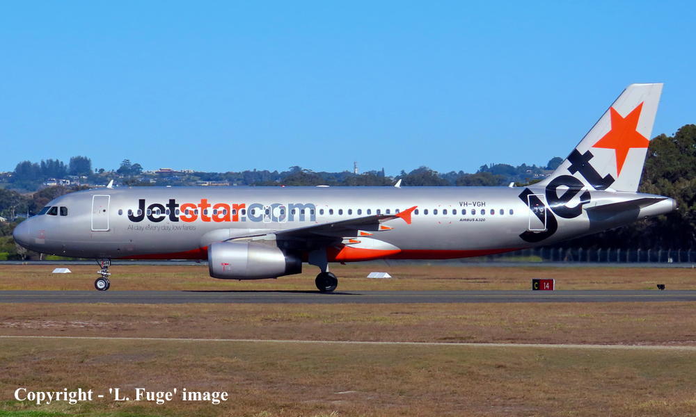 VH-VGH. Jetstar - in the standard livery at Adelaide West Beach Airport, July 10, 2013.
