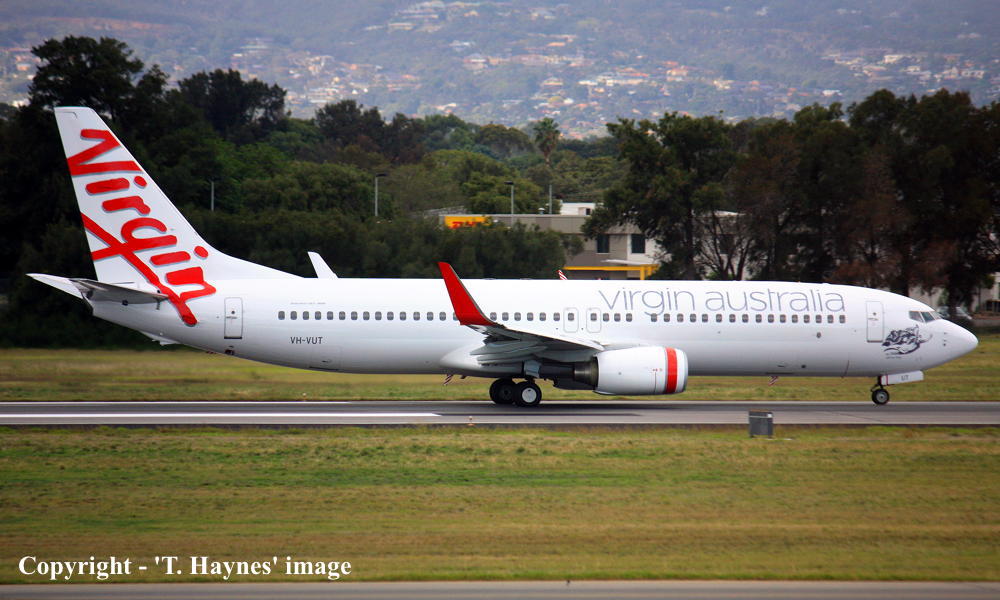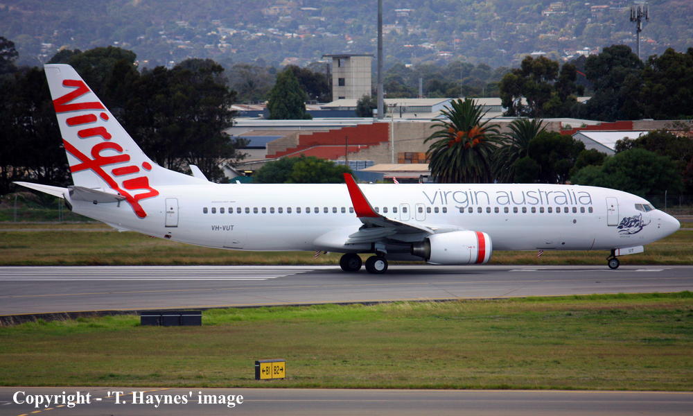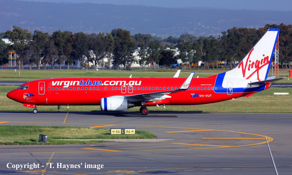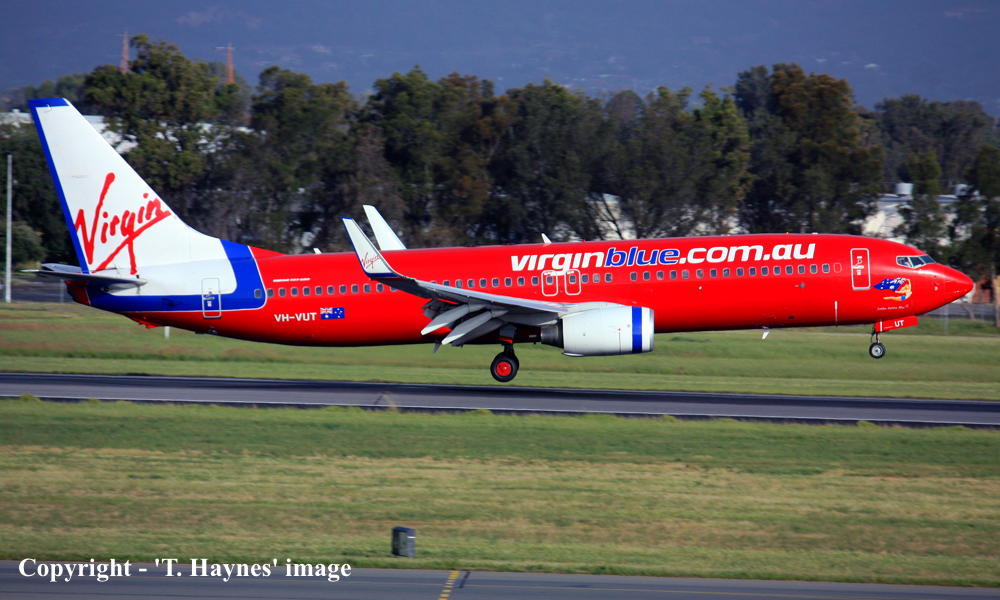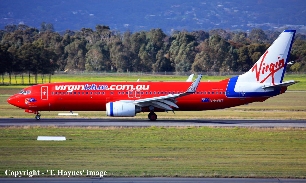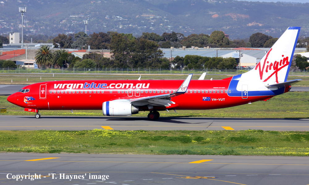VH-VUT. Virgin Blue - 'Yabba Dabba Blue' in the standard livery at Adelaide West Beach Airport, July 08, 2013. (T. Haynes Copyright Image 4620-804.) |