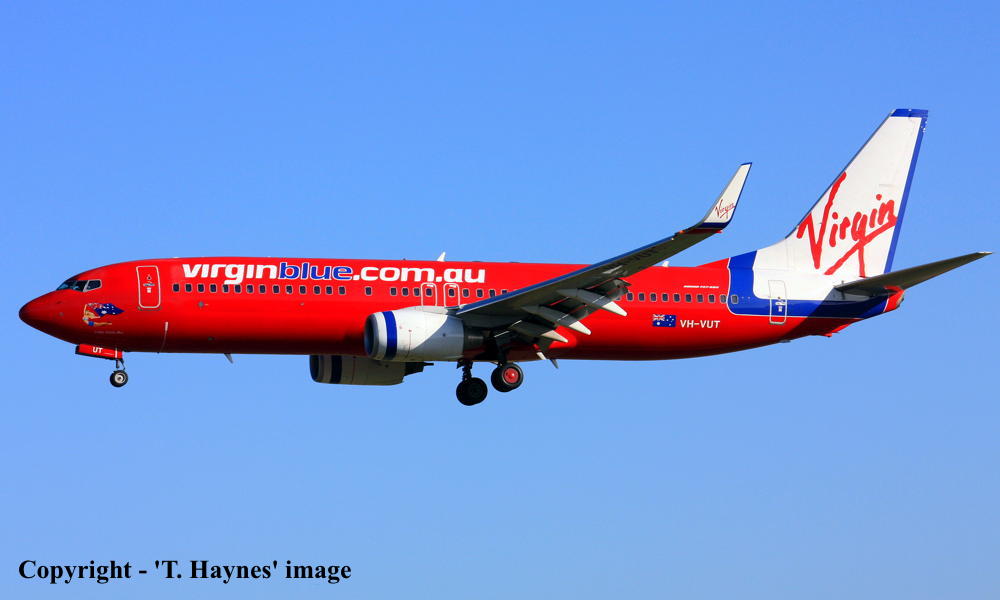 This aircraft was ordered new by Virgin Blue Airlines Pty Ltd - ? Powered by CFM International CFM56-7B26 engines Entered onto the Australian Aircraft Register as VH-VUT - November 04, 2009 Registered to Virgin Blue Pty Ltd, Spring Hill, Queensland Rolled off the Boeing production line at Seattle (Renton) with winglets - December 02, 2009 First flown as 'N5573L' in the standard Virgin Blue livery - December 08, 2009 The aircraft was named 'Yabba Dabba Blue' Accepted by Virgin Blue at Seattle (Boeing Field) - December 20, 2009 Departed Seattle (Boeing Field) on the delivery flight to Australia as DJ9080 - December 21, 2009 Registered to Pacific Triangle Leasing Limited, Cayman Islands - December 22, 2009 Leased to Virgin Blue Pty Ltd as the registered operator It arrived at Brisbane on completion of the delivery flight from the United States - December 23, 2009 Delivery route: Seattle - Lihue - Nadi - Brisbane Operated its first revenue service Brisbane - Sydney (Kingsford Smith) as DJ942 - January 08, 2010 Virgin Blue was renamed Virgin Australia Airlines Pty Ltd - May 04, 2011 Repainted intio the standard 'Virgin Australia' livery - ? 2014 The aircraft was renamed 'Alma Bay' Registered to JRQ 5 Limited, Dublin, Ireland - August 20, 2014 Leased to Virgin Australia Airlines Pty Ltd, Spring Hill, Queensland as the registered operator Current with Virgin Australia Airlines |