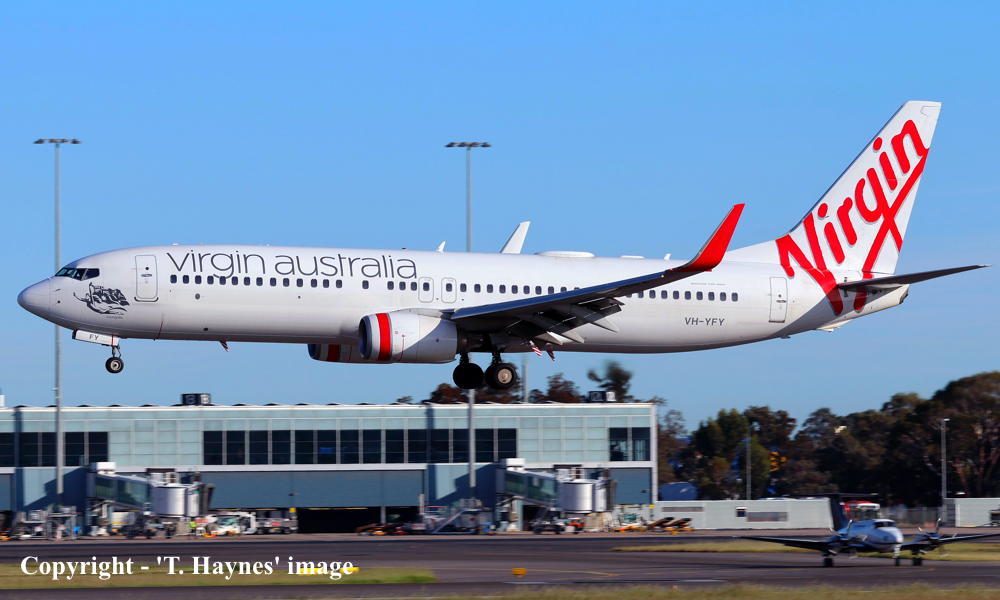 VH-YFY. Virgin Australia - 'Mungalla' in the standard livery at Adelaide West Beach Airport, March 02, 2019. (T. Haynes Copyright Image 4622-498.) |