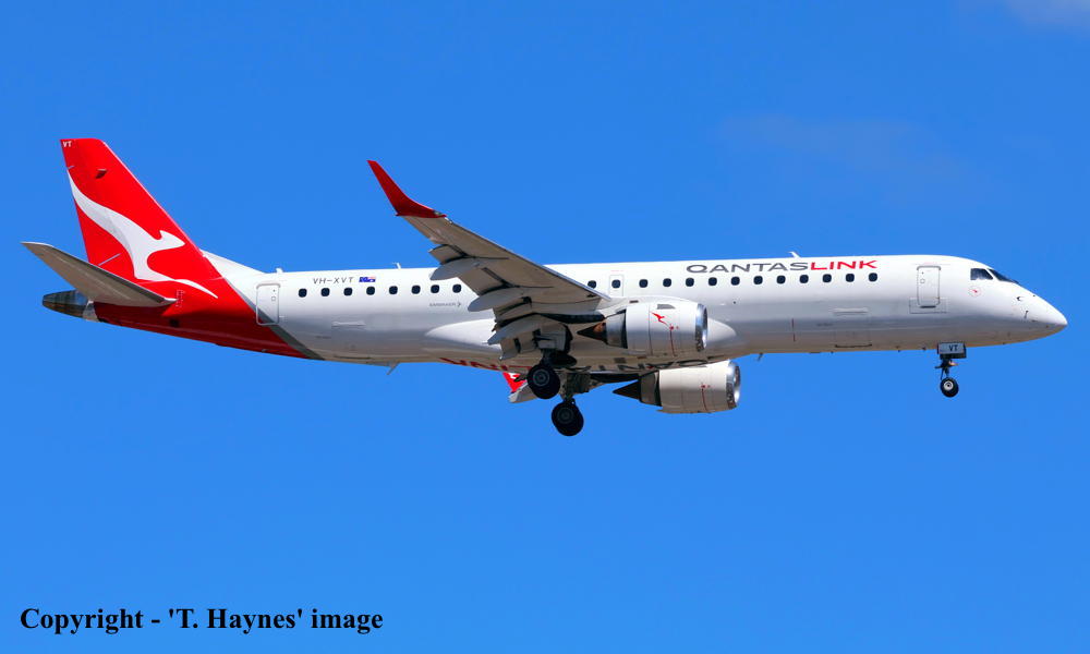 This aircraft was ordered by U. S. Airways - ? Rolled off the production line at Sao Jose dos Campos, Brazil - March 2007 First flown as 'PT-SJL' - March 2007 Powered by General Electric GE34-10E6 engines Entered onto the United States Aircraft Register as N946UW - March 21, 2007 Registered to U. S. Airways, Pittsburg, PA Accepted by U. S. Airways at Sao Jose dos Campos - March 21, 2007 U. S. Airways was absorbed by American Airlines - April 08, 2015 Reregistered as N953UW - December 30, 2015 Registered to American Airlines The aircraft was withdrawn from service and stored at Pittsburgh - March 27, 2020 It was ferried Pittsburgh - Rowell, New Mexico for storage - April 15, 2020 Registered to TVPX Aircraft Solutions Inc Trustee, North Salt Lake City, Utah - October 05, 2021 Ferried Roswell - San Jose (Costa Rica) for storage - June 26, 2022 The aircraft was repainted into the 'QantasLink' livery at San Jose in preparation for lease / sale Test flown San Jose - San Jose as QQ9812 - October 07, 2022 Departed San Jose (Costa Rica) on the delivery flight to Australia as QQ9812 - October 10, 2022 Experienced mechanical problems at San Diego when preparing to take-off - October 10, 2022 Departed San Diego on resumption of the delivery flight - October 17, 2022 It arrived at Brisbane (14:54 local) on completion of the delivery flight from Costa Rica - October 19, 2022 Delivery route: San Jose - San Diego - Honolulu - Majuro - Brisbane Cancelled from the United States Aircraft Register - October 24, 2022 Entered onto the Australian Aircraft Register as VH-XVT - November 07, 2022 Registered to Bravo Airlines Pty Ltd, Brisbane Leased to Alliance Airlines Pty Ltd, Brisbane as the registered operator Test flown Brisbane - Brisbane as QQ981 - December 01, 2022 This aircraft is operated by Alliance for QantasLink commencing - December 03, 2022 Operated first QantasLink revenue service Brisbane - Adelaide (West Beach) as QF1929 - December 03, 2022 Current with Alliance Airlines / QantasLink |