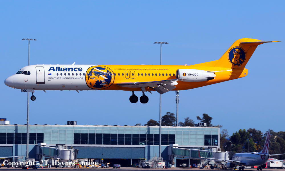 This aircraft was ordered new by American Airlines - ? The American registration 'N1474D' reserved by 'American Airlines' - September 16, 1988 The temporary export registration 'E-1349 / PH-EZV' was applied to the aircraft - April 29, 1994 The temporary export registration E-1349 / PH-EZV was reserved by Fokker Aircraft B.V. - May 03, 1994 First flown as 'PH-EZV' in the 'American Airlines' livery - May 25, 1994 Powered by Rolls Royce Tay 650-15 engines Certificate of Airworthiness (CofA) issued - June 06, 1994 Sold to Fokker Aircraft USA, Inc - June 07, 1994 Accepted by American Airlines at Amsterdam (Schiphol) - June 07, 1994 The aircraft was cleared for export to the United States - June 09, 1994 The temporary export registration 'E-1349 / PH-EZV' was removed from the aircraft - June 09, 1994 Entered onto the United States Aircraft Register as N1474D - June 09, 1994 Registered to American Airlines Inc The aircraft was configured with seating for 8 business class and 79 economy class passengers Departed Amsterdam (Schiphol) on the ferry flight to the United States - June 10, 1994 Operated its first revenue service Chicago (O'Hare) - Atlanta - June 12, 1994 Operated its last revenue service - February 02, 2003 Ferried Tulsa - Mojave for storage - February 04, 2003 The aircraft had flown 21,414 hours with 14,412 cycles Registered to Wells Fargo Bank Northwest Trustee - October 14, 2003 Leased to Helvetic Airlines, Switzerland - 2004 It arrived at Eindhoven in 'American Airlines' livery - October 09, 2004 Ferried Eindhoven - Woensdrecht for maintenance - October 10, 2004 Cancelled from the United States Aircraft Register - October 12, 2004 Entered onto the Dutch Aircraft Register as PH-ZFJ - November 11, 2004 Registered to Fokker Services BV, Hoogerheide BvL6641 Cancelled from the Dutch Aircraft Register - February 03, 2005 Entered onto the Austrian Aircraft Register as OE-LVG - February 03, 2005 Registered to Austrian Airlines Lease & Finance Corp Ltd The aircraft was named 'Krakow' Leased to Slovak Airlines as the registered operator It had been reconfigured with 105 Economy class seats Ferried Woensdrecht - Vienna - February 03, 2005 It was observed at Vienna in an all-white livery - February 13, 2005 It was observed at Bratislava in the 'Slovak' livery - February 18, 2005 Returned to Austrian Airlines at the end of the lease - June 21, 2005 Entered service with Austrian Arrows in the 'Star Alliance' livery - June 28, 2005 It was observed at Innsbruck in the 'Star Alliance' livery - October 28, 2006 Ferried to Norwich for repairs - January 15, 2011 It was observed at Geneva in the 'Star Alliance' livery with additional '15 Years' titles - June 15, 2012 The aircraft was transferred to Austrian Airlines -July 01, 2012 The aircraft had been reconfigured with 100 Economy Class seats Operated its final revenue service Graz - Vienna as OS964 - November 07, 2016 Ferried Vienna - Bratislava for storage - November 15, 2016 Sold to Alliance Airlines Pty Ltd - May 2019 Cancelled from the Austrian Aircraft Register - May 2019 Entered onto the Australian Aircraft Register as VH-UQG - May 17, 2019 Registered to Alliance Airlines Pty Ltd, Eagle Farm, Brisbane Ferried Bratislava - Norwich for maintenance and repainting - December 12, 2019 It was painted in the 'Sir Charles Kingsford Smith - Southern Cross' livery This was to commemorate the first crossing of the Pacific Ocean by Charles Kingsford Smith in 1928 Rolled out a Norwich in the special livery - January 04, 2020 Test flown Norwich - Norwich - January 07, 2020 Ferried Norwich - Bratislava as SXI2003 - January 09, 2020 Departed Bratislava on the ferry flight to Australia as SXI2003 - January 15, 2010 It arrived at Brisbane on completion of the ferry flight - January 19, 2020 Ferry route: Bratislava - Hurghada - Al Ain - Nagpur - Penang - Darwin - Brisbane Test flown Brisbane - Brisbane (1 hour 09 minutes) as UTY9108/QQ9108 - January 30, 2020 Operated its first revenue service Brisbane - Maroochydore as UTY4078/QQ4078 - February 03, 2020 Current with Alliance Airlines |