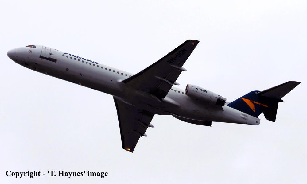VH-UQN. Fokker F28-0100. c/n 11361. Was also registered as: N1408D; C-GKZF; PH-ZFN; OE-LVM. |