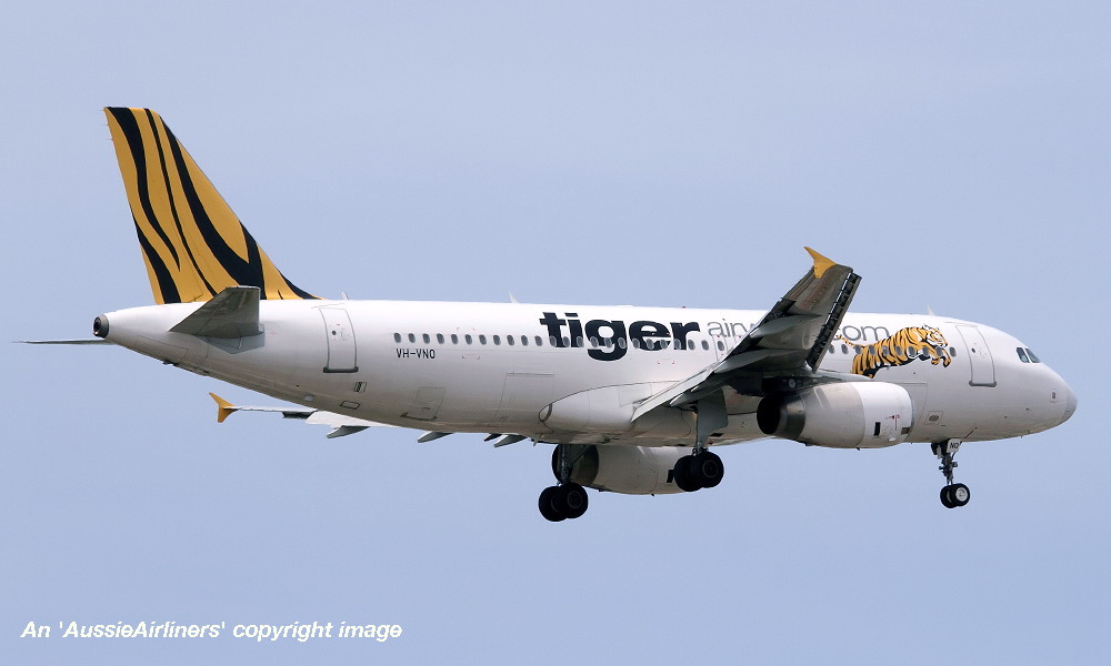 VH-VNO. Tiger Airways - in the standard livery at Adelaide West Beach Airport, July 15, 2011. (R. Brown Copyright Image 0320-232.) |