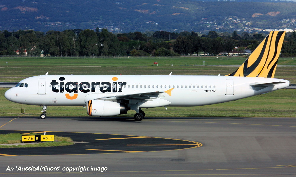 VH-VNO. Tiger Airways - in the standard livery at Adelaide West Beach Airport, November 14, 2012. (R. Brown Copyright Image 0320-231.) |