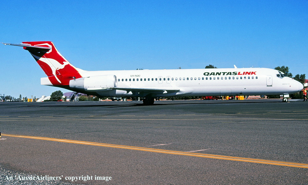 VH-NXI. QantasLink - in the 'New Roo' livery at Alice Springs Airport, June 2007.