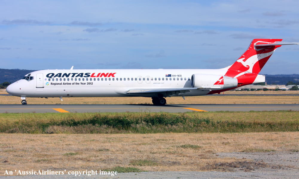 VH-NXI. QantasLink - in the 'New Roo' livery at with additional 'Regional Airline Of The Year 2012' titles at Adelaide West Beach Airport, March 17, 2013.