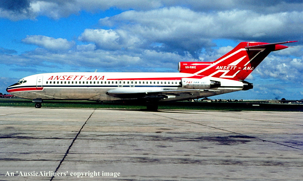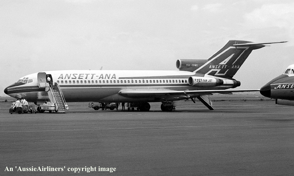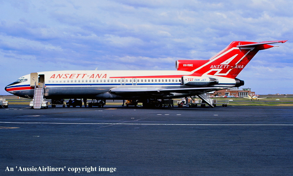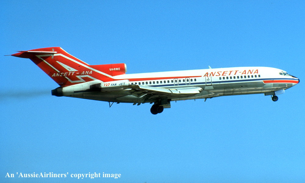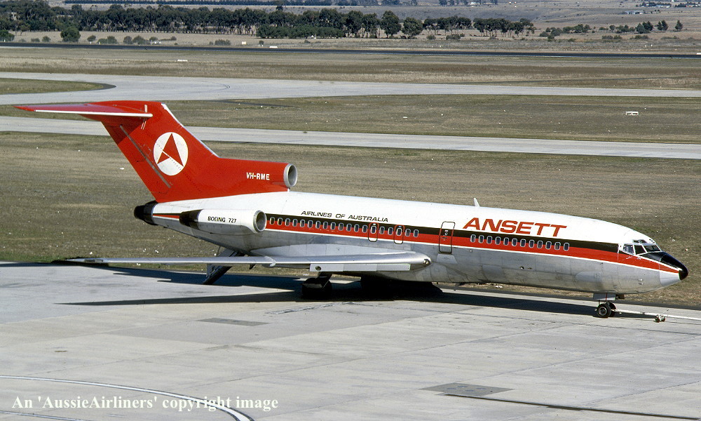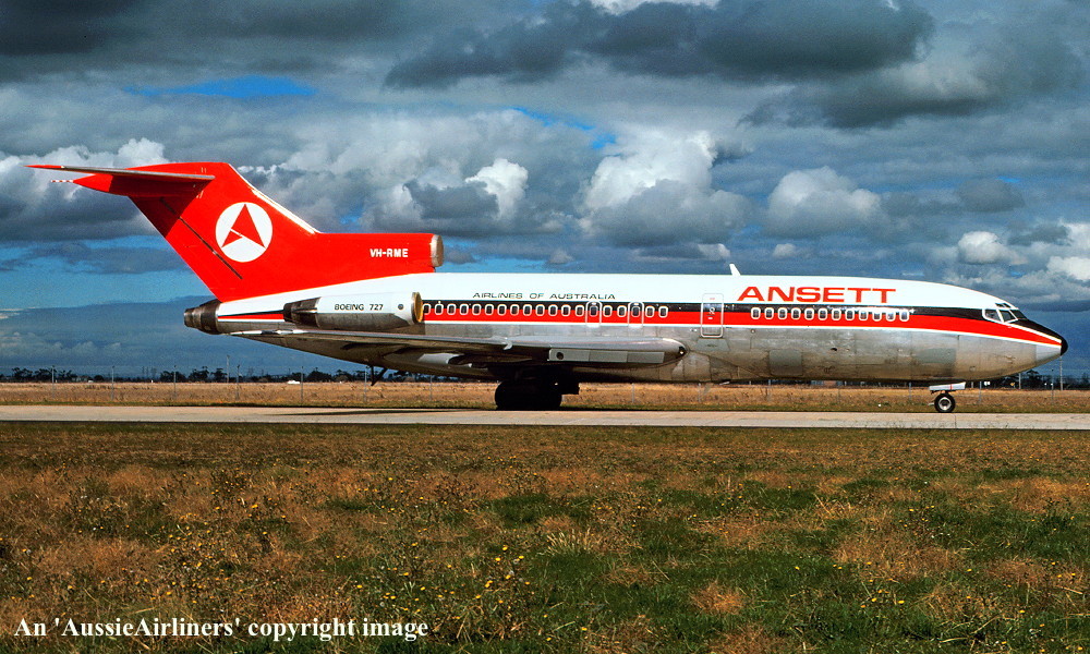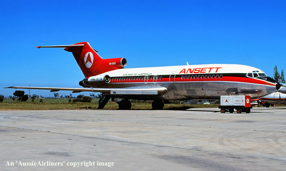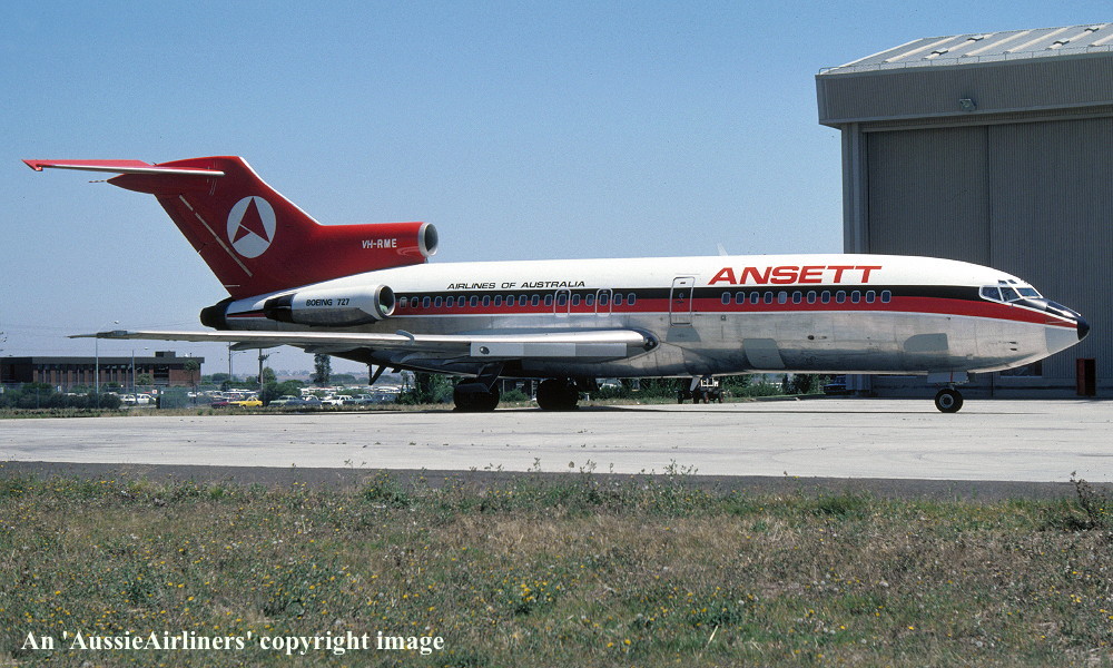 VH-RME. Boeing 727-77. c/n 18743-78. Was also registered as: XA-MEG; PT-TCE; N8140V; TC-AJT; N143CA; HK-3551X; XA-SDH; HH-JEC; XA-SIR. |