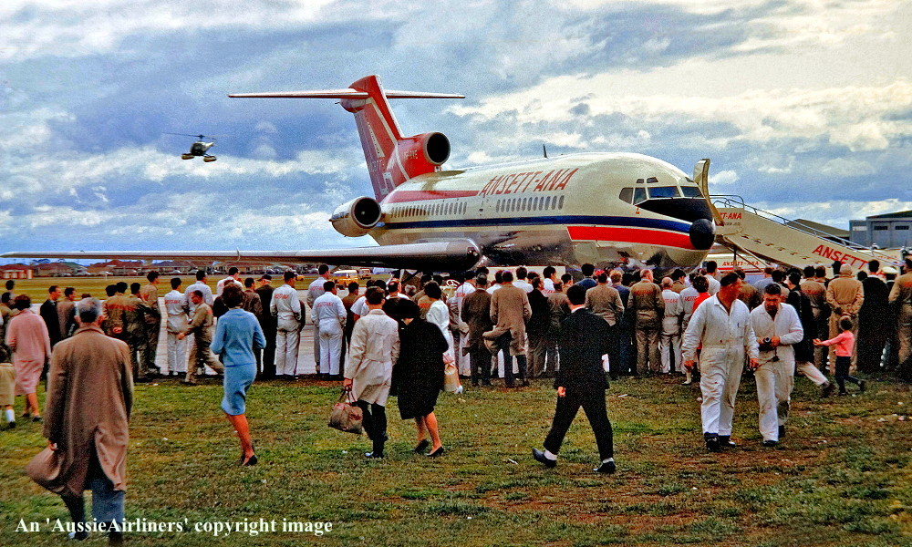 VH-RME. Ansett Airlines of Australia - in the 'delta' livery at Melbourne Tullamarine Airport, January 1973. (R. N. Smith Copyright Image 4610-058.) |