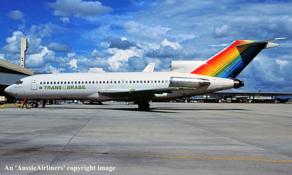 PT-TCE. Trans Brasil - in the standard livery at Sao Paulo Airport, March 1988. (R. N. Smith Collection Copyright Image 4610-937.) |