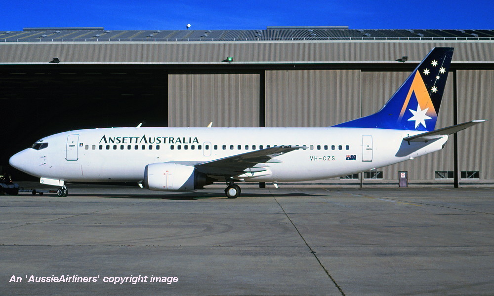 VH-CZS. Boeing 737-33A. c/n 24030-1654. Was also registered as: G-OBMC; XA-SGJ; ZK-CZS; XA-UCP; N240TF; ZS-OAI. |