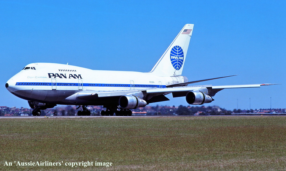 N532PA. Pan Am - 'Clipper Constitution' in the standard livery at Sydney Kingsford Smith Airport, January 06, 1978. (R. N. Smith Copyright Image 4635-110.) |