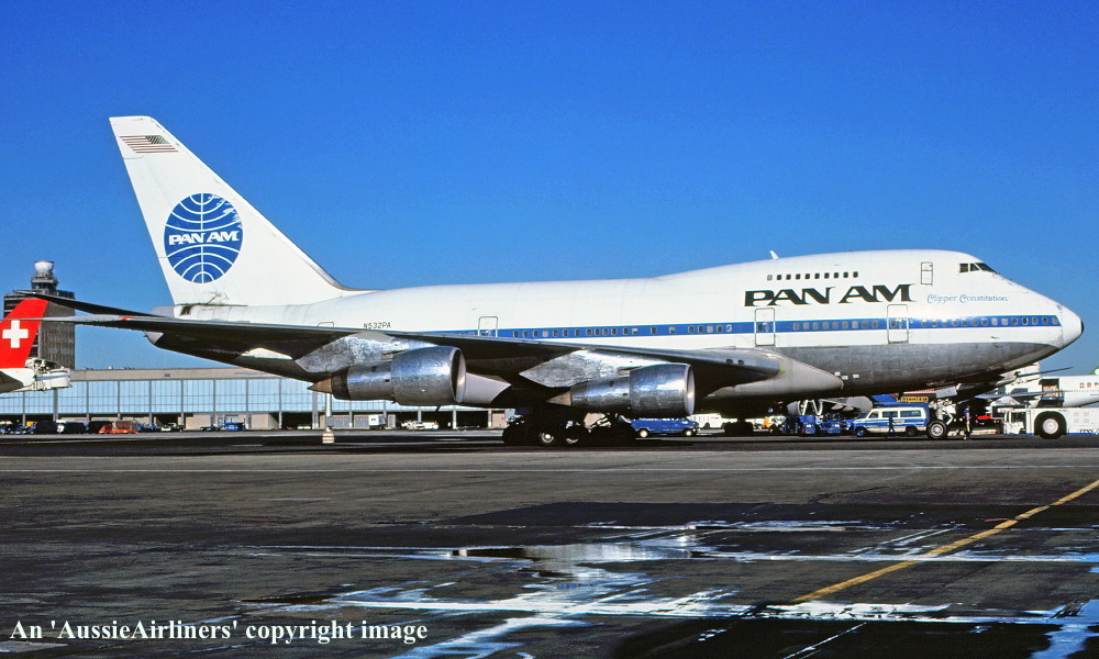 N532PA. Pan Am - 'Clipper Constitution' in the standard livery at Sydney Kingsford Smith Airport, September 26, 1979. (R. N. Smith Copyright Image 4635-494.) |