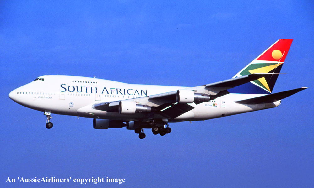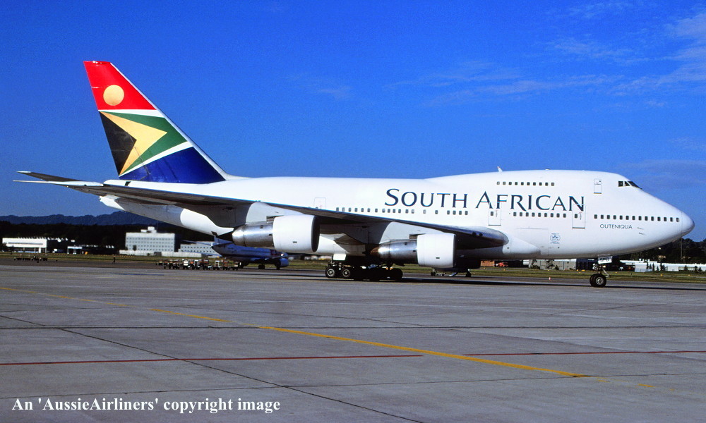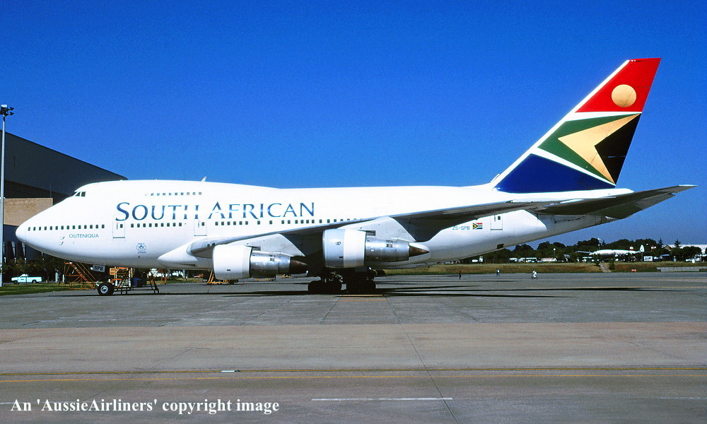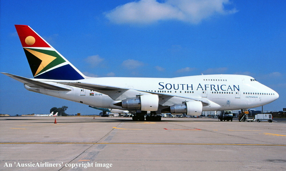 ZS-SPB. South African - 'Outeniqua' in the standard livery at Johannesburg Airport, April 1998. (R. N. Smith Collection Copyright Image 4635-573.) |