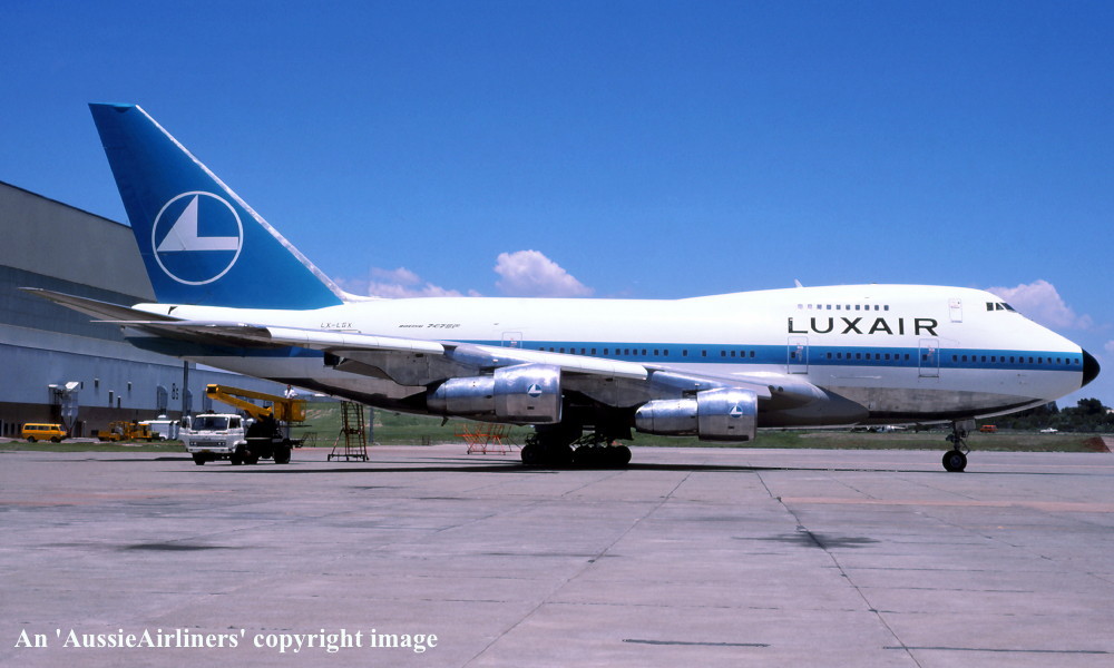 LX-LGX. Luxair - in the standard livery at Johannesburg Airport, November 1987. (R. N. Smith Collection Copyright Image 4635-158.) |