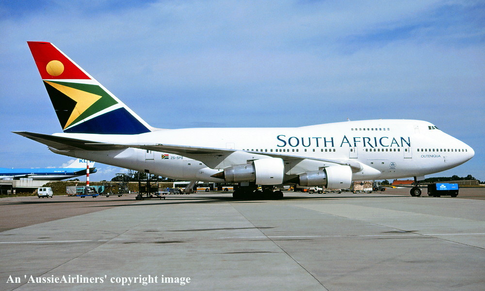 ZS-SPB. South African - 'Outeniqua' in the standard livery at Amsterdam Schiphol Airport, September 1997. (R. N. Smith Collection Copyright Image 4635-497.) |