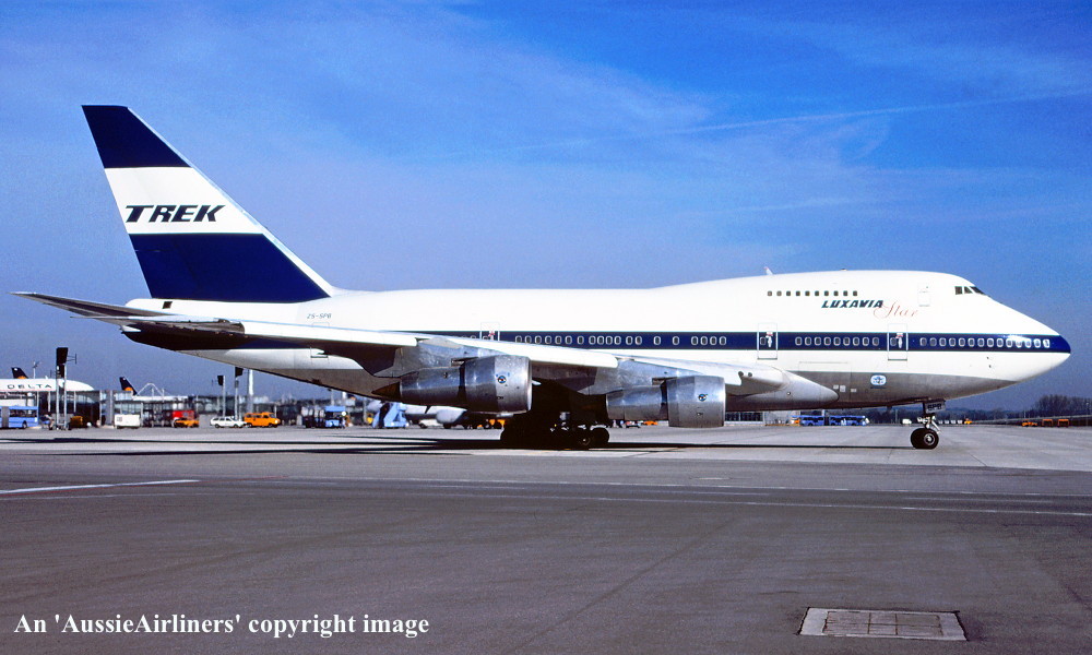 ZS-SPB. Trek Luxavia Star - in the standard livery at Munich Airport, February 1994. (R. N. Smith Collection Copyright Image 4635-620.) |