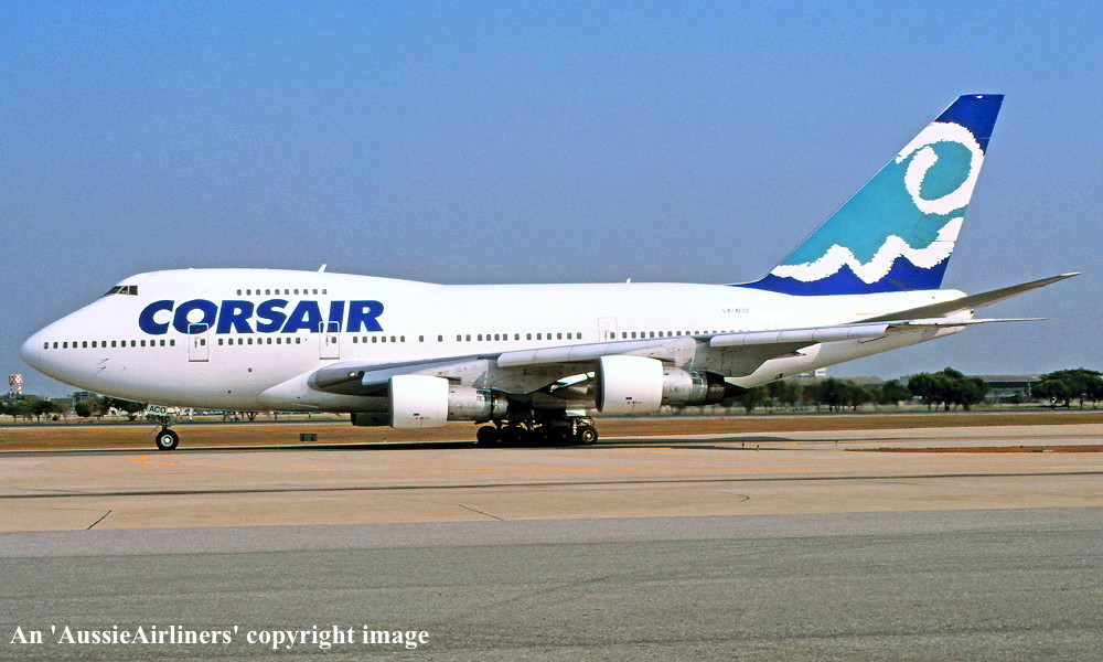 LX-ACO. Corsair - in the standard livery at Paris Orly Airport, March 1995. (R. N. Smith Collection Copyright Image 4635-148.) |