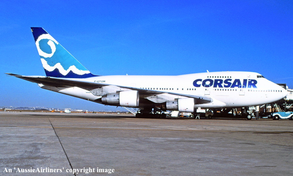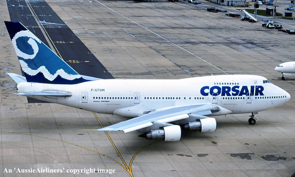 F-GTOM. Corsair - in the standard livery at Paris Orly Airport, July 2002. (R. N. Smith Collection Copyright Image 4635-149.) |