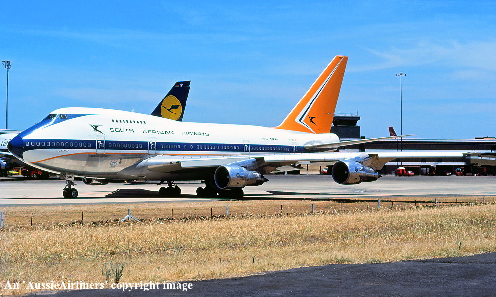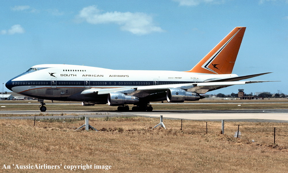 ZS-SPE. South African Airways - 'Hantam' in the original livery at Sydney Kingsford Smith Airport, January 10, 1980. (R. N. Smith Copyright Image 4635-395.) |