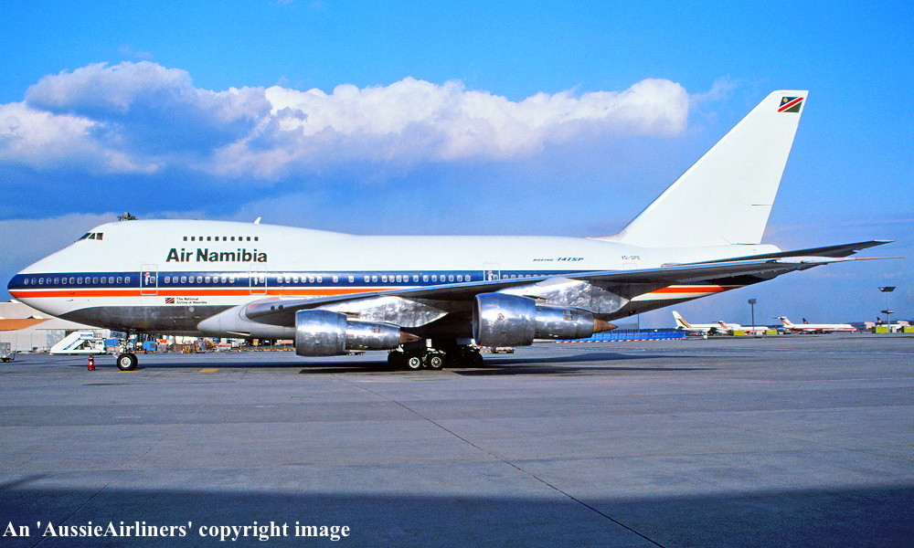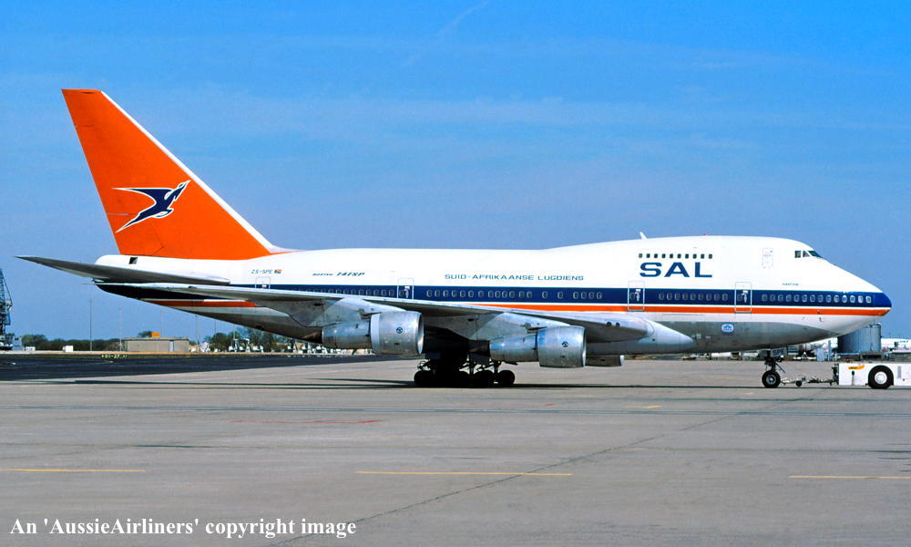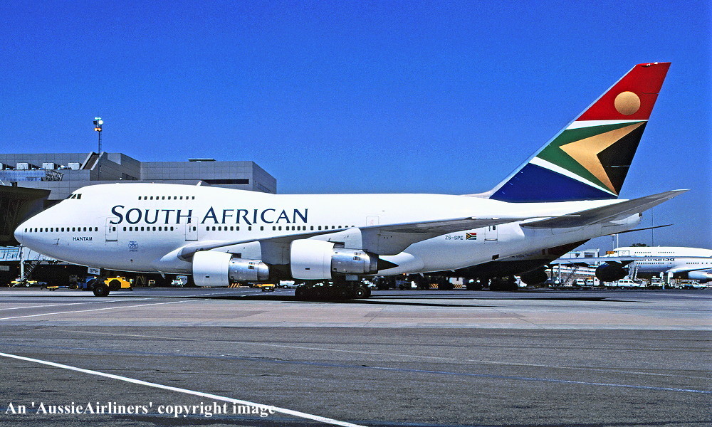 ZS-SPE. Boeing 747SP-44. c/n 21254-298. Was also registered as: 3B-NAR; V5-SPE. |