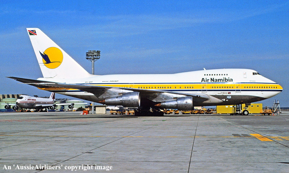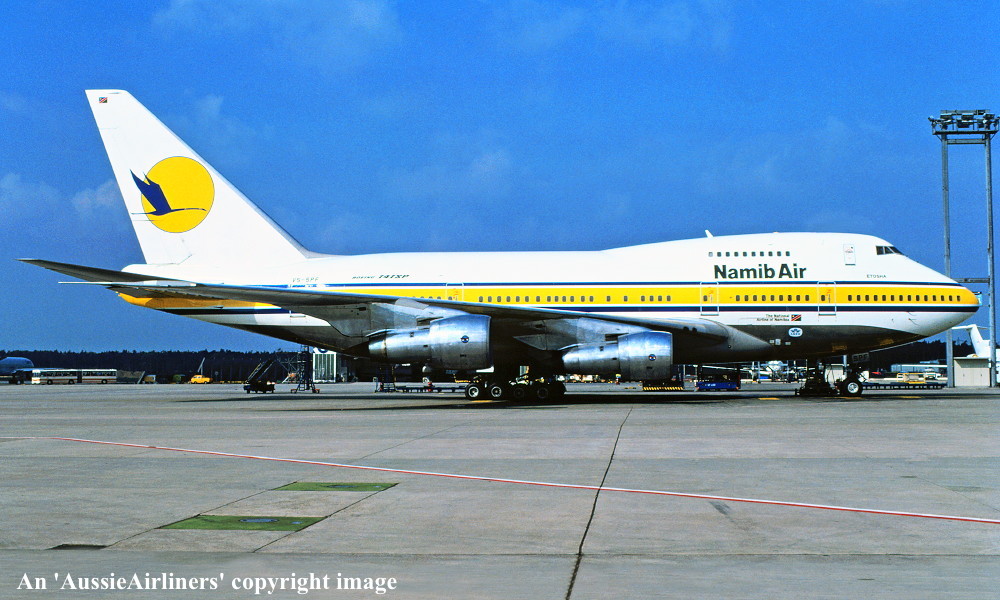 V5-SPF. Namib Air - in the standard livery at Frankfurt Airport, July 1991. (R. N. Smith Collection Copyright Image 4635-318.) |