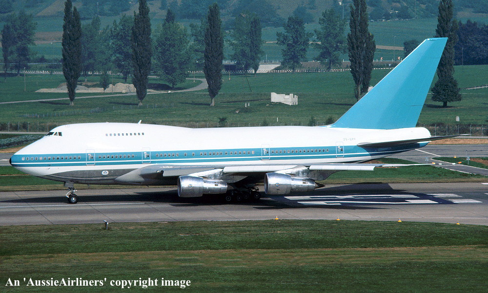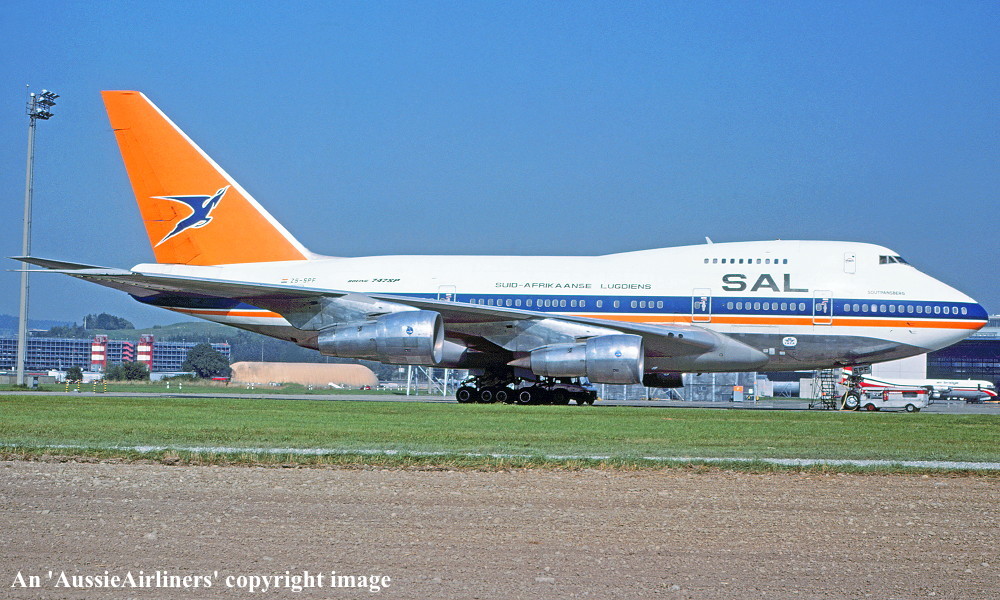 ZS-SPF. SAL Suid Afrikaanse Lugdiens - 'Soutpansberg' in the non-standard livery at Zurich Airport, September 1988. (R. N. Smith Collection Copyright Image 4635-123.) |