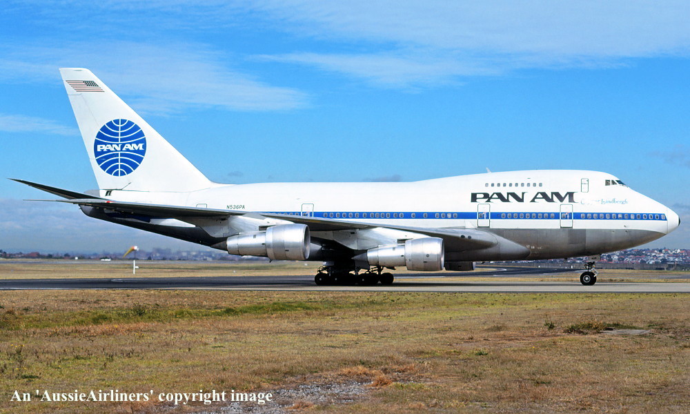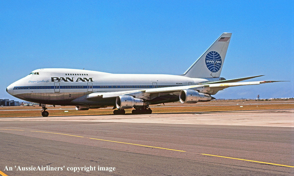 N536PA. Pan Am - 'Clipper Lindbergh' in the original livery at Sydney Kingsford Smith Airport, October 04, 1979. (R. N. Smith Copyright Image 4635-198.) |