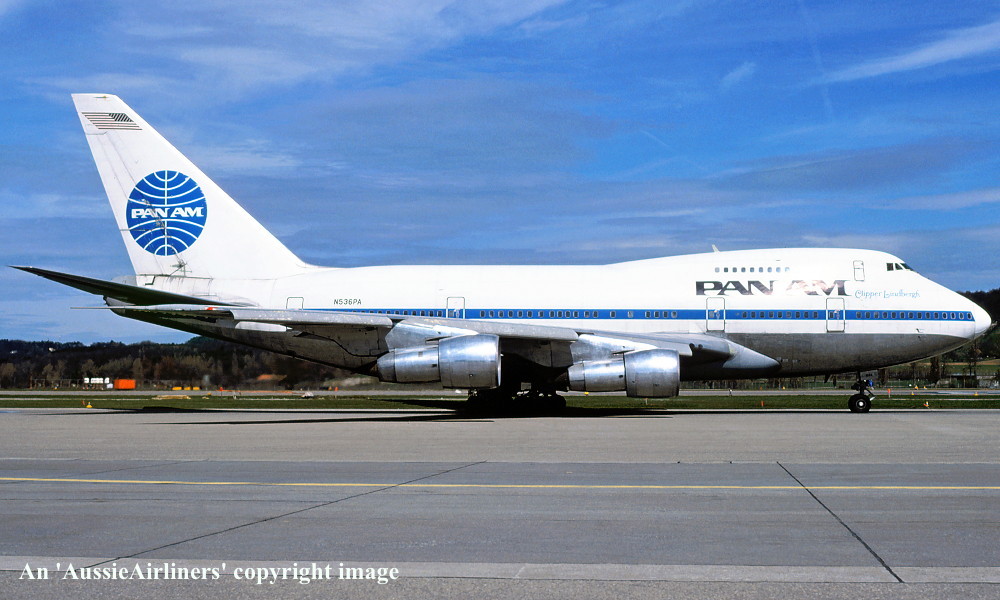 N536PA. Pan Am - 'Clipper Lindbergh' in the original livery at Zurich Airport, April 1985. (R. N. Smith Collection Copyright Image 4635-302.) |