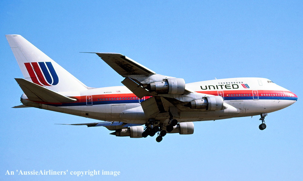 N145UA. United - in the standard livery at Melbourne Tullamarine Airport, November 1992. (R. N. Smith Collection Copyright Image 4635-458.) |