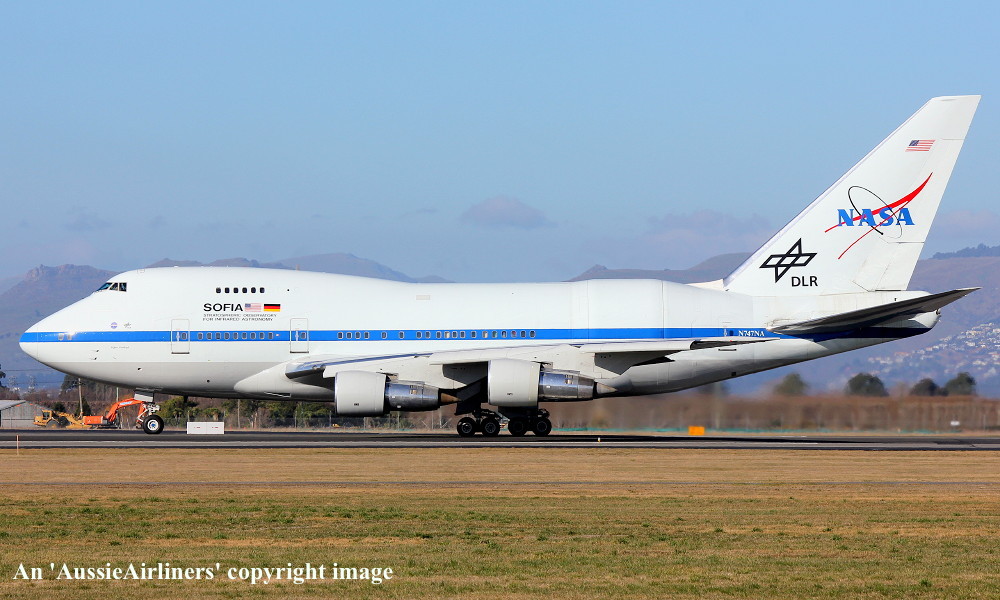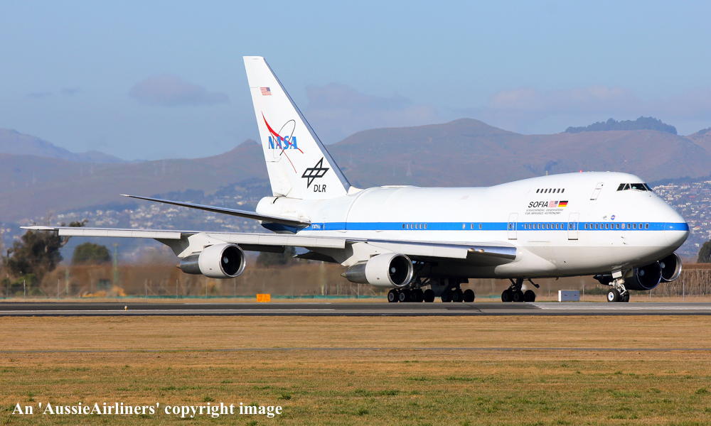 N747NA. Sofia NASA DLR - in the standard livery at Christchurch Airport, August 11, 2022. (Z. Rae Copyright Image 4635-944.) |
