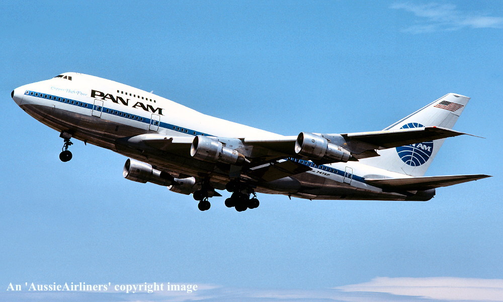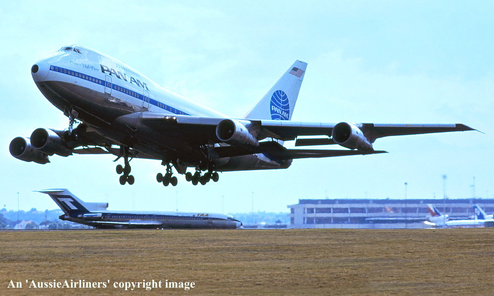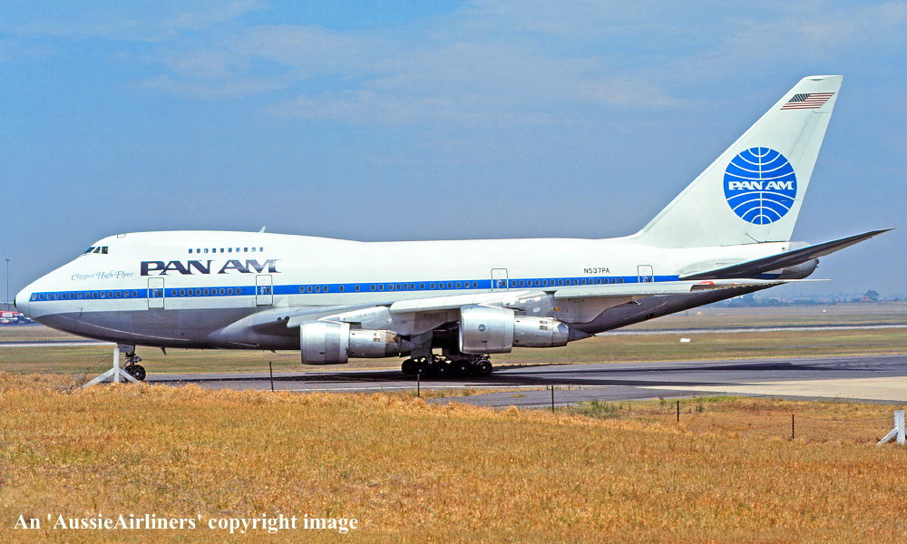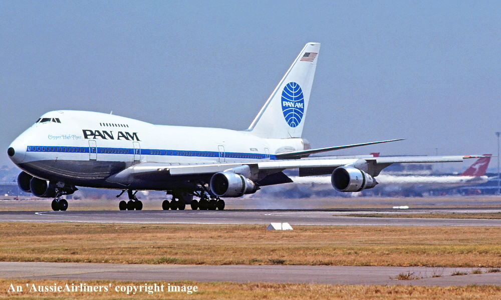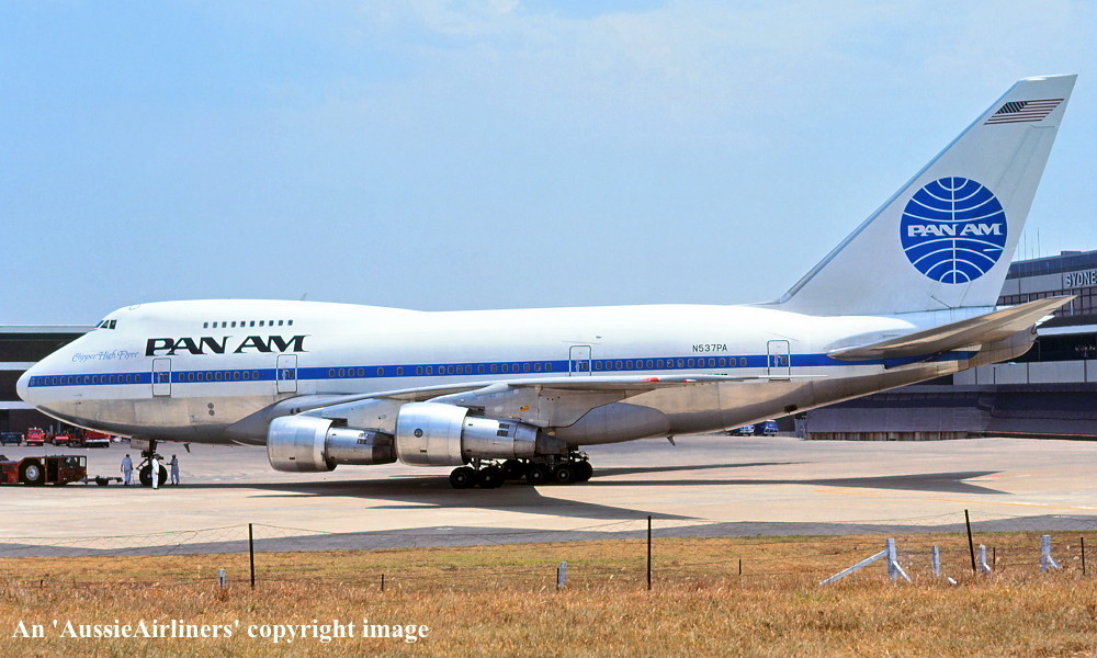 N537PA. Pan Am - 'Clipper High Flyer' in the original livery at Sydney Kingsford Smith Airport, January 1980. (R. N. Smith Copyright Image 4635-004.) |