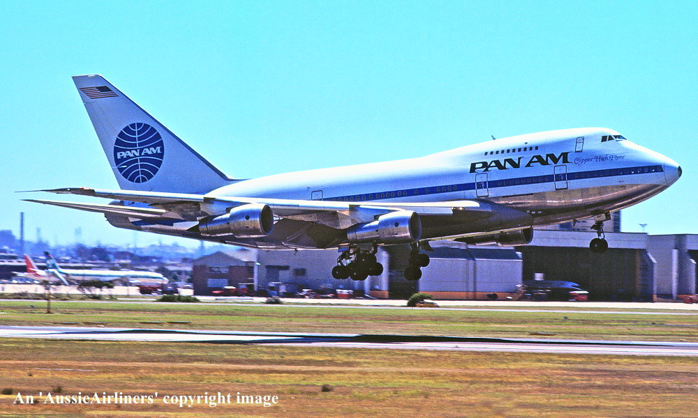 N537PA. Pan Am - 'Clipper High Flyer' in the original livery at Sydney Kingsford Smith Airport, April 1979. (R. N. Smith Copyright Image 4635-498.) |