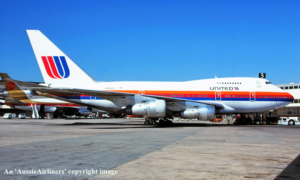 N146UA. United - in the standard livery at Melbourne Tullamarine Airport, March 1986. (R. N. Smith Copyright Image 4635-553.) |