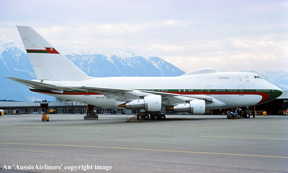 A40-SO. Oman Government - in the standard livery at Salzburg Airport, March 12, 1989. (R. N. Smith Collection Copyright Image 4635-477.) |