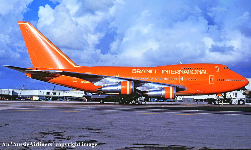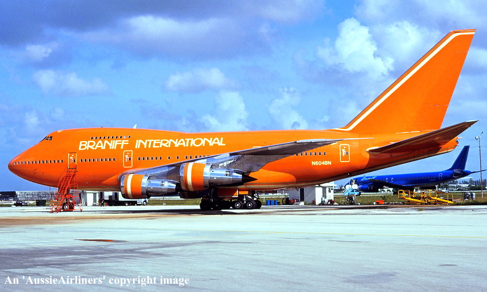 N604BN. Braniff International - in the standard livery at Miami Airport, August 1980. (R. N. Smith Collection Copyright Image 4635-406.) |