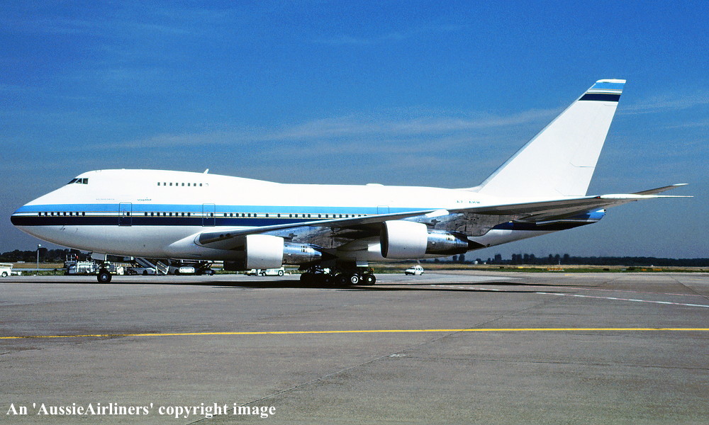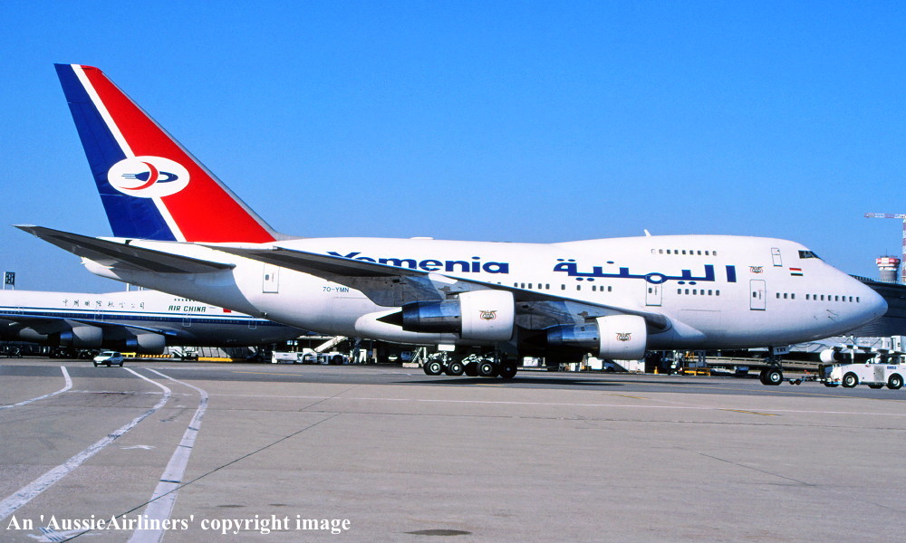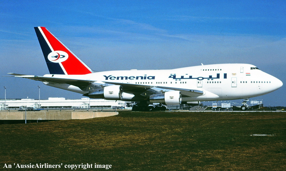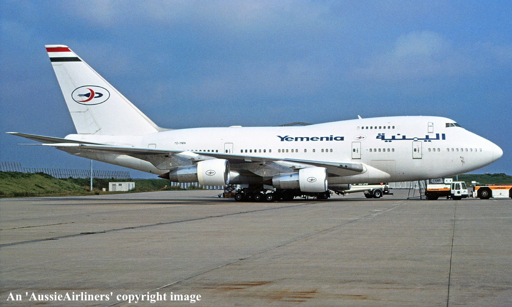 This was the second Boeing 747SP ordered by Braniff International on May 22, 1978 to meet the anticipated passenger growth in the deregulated United States aviation market. It was the twenty-sixth 747SP to be built and was rolled out of the Boeing plant at Everett on October 22, 1979 with Pratt & Whitney JT9D-7J engines. Entered onto the United States Aircraft Register as N604BN it flew for the first time on November 29, 1979. Finally accepted by Braniff at Paine Field on April 23, 1980 in the striking orange livery it was configured to seat 192 passengers. Little of the expected new business materialised from the anticipated growth in air travel from the newly deregulated U. S. market. This was evident with many Braniff 747 services departing from the new Boston hub nearly empty. The new Los Angeles hub, created to handle expected increases in travel on the airline's trans Pacific flights to Hong Kong, Tokyo and Seoul, as well as an 'oil run' service between Dallas, Houston and Dubai utilising the 747SP fleet, did not deliver the anticipated growth. Rising fuel costs and reduced passenger bookings due to an economic recession resulted in Braniff cancelling all of its Pacific services except for the Dallas - Honolulu route. As a result this aircraft was offered for sale soon after delivery. It was sold to Aerolineas Argentinas and rolled out in their full livery at Orly Airport on September 09, 1980. Ferried Orly - Dallas Fort Worth Airport, Texas on September 04, 1980 it was officially sold to Aerolineas Argentinas on September 12 and entered onto the Argentine Aircraft Register as LV-OHV. When no longer required it was sold to Caldwell Aircraft Trading on May 30, 1990 for on sale to Air Mauritius the following day. It was entered onto the Mauritian Aircraft Register as 3B-NAQ and named 'Chateau Benares'. Air Mauritius sold it to Qatar Airways on February 07, 1996 and it was entered onto the Qatar Aircraft Register as A7-ABM. It was observed at London Gatwick Airport in basic Air Mauritius livery without titles or tail logo on April 08, 1996. It was sold to the Qatar Government on August 01, 1996 before entering the British Airways maintenance facilities at London's Heathrow Airport the following month. Its registration was amended to A7-AHM on November 01, 1996. At some stage after its purchase by the Qatar Government it was converted to an executive configuration. Transferred back to Qatar Airways on March 08, 1998 it remained in service until sold to the Yemen People's Republic on July 01, 2001. Entered onto the Yemeni Aircraft Register as 7O-YMN it operated its first service from Sanaa to Frankfurt on July 16, 2001 in its new livery. It was observed at Geneva on December 13, 2007 with new styled titling on the fuselage. This aircraft is regularly seen throughout Europe as it continued to fly with Yemenia. |