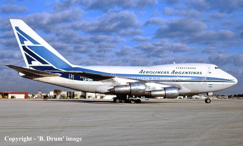 LV-OHV. Aerolineas Argentinas - in the standard livery at Miami Airport, January 1986. (B. Drum Copyright Image 4635-404.) |