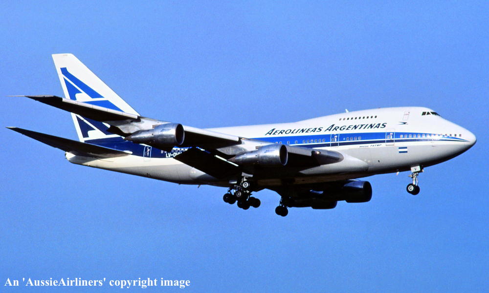 LV-OHV. Aerolineas Argentinas - in the standard livery at an unknown airport, November 01, 1981. (R. N. Smith Collection Copyright Image 4635-852.) |