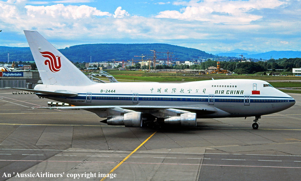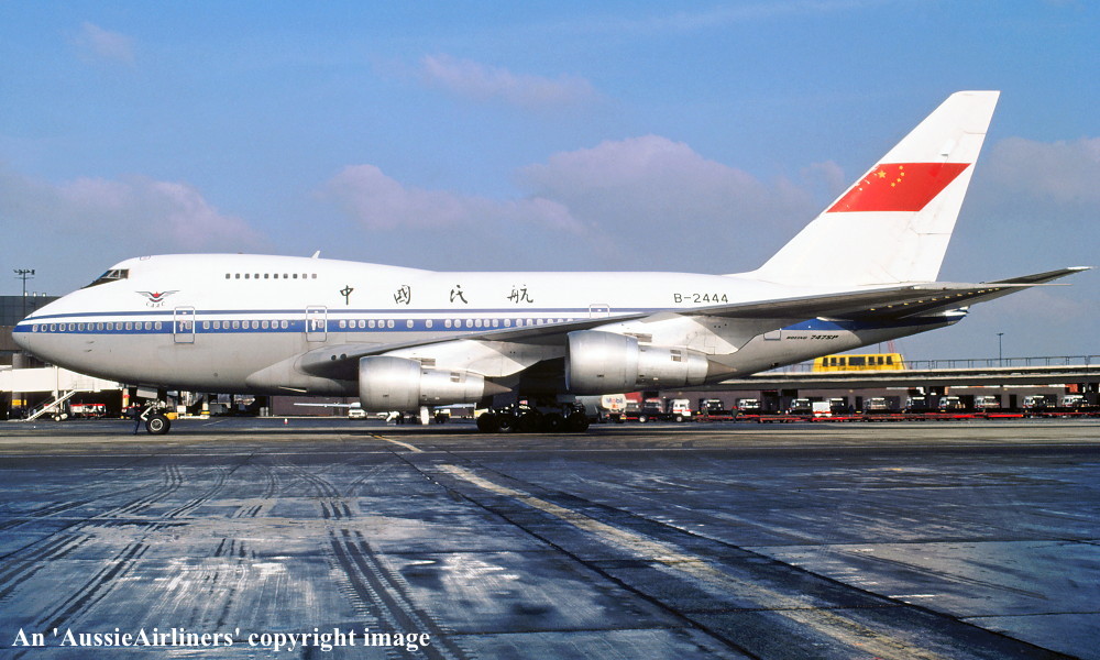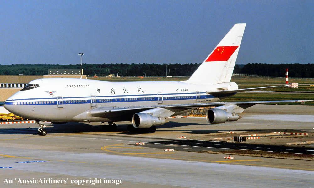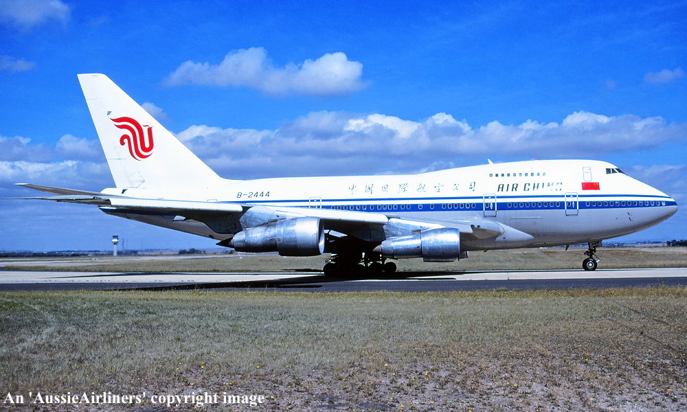B-2444. Air China - in the standard livery at Melbourne Tullamarine Airport, January 1990. (R. N. Smith Collection Copyright Image 4635-394.) |