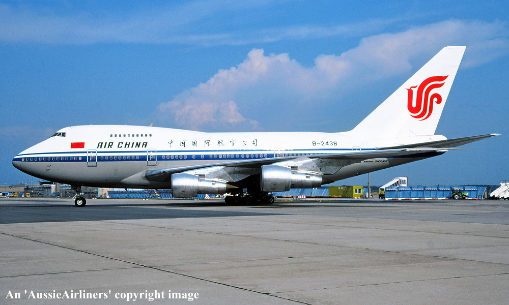 B-2438. Air China - in the standard livery at an unknown airport, July 1996. (R. N. Smith Collection Copyright Image 4635-676.) |