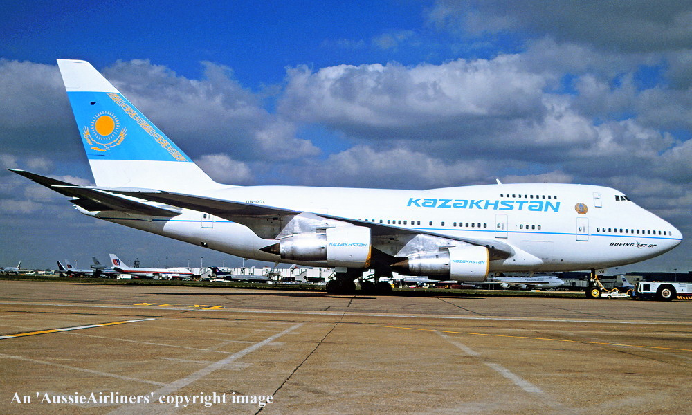 UN-001. Kazakhstan - in the standard livery at Los Angeles Airport, June 1994. (R. N. Smith Collection Copyright Image 4635-192.) |