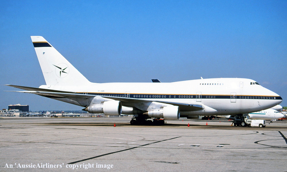 TF-ABN. Air Atlanta - in the basic 'Kazakhstan' livery at Las Vegas Airport, August 1997. (R. N. Smith Collection Copyright Image 4635-239.) |