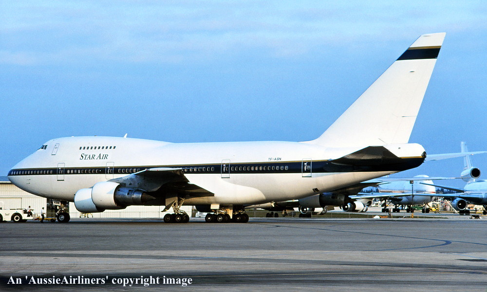 TF-ABN. Star Air - in the standard livery at an unknown airport, July 1998. (R. N. Smith Collection Copyright Image 4635-220.) |
