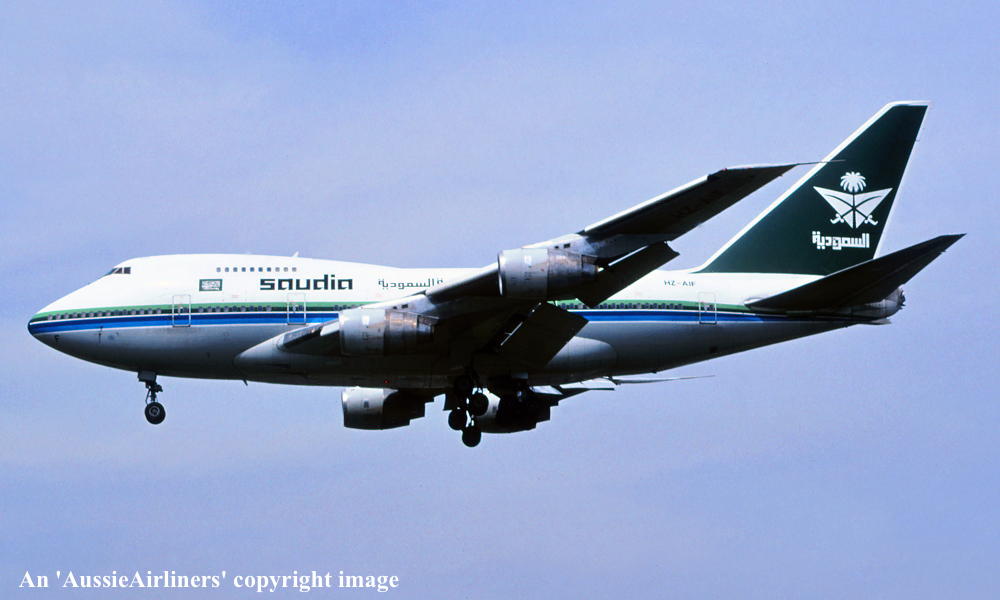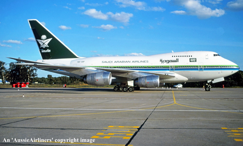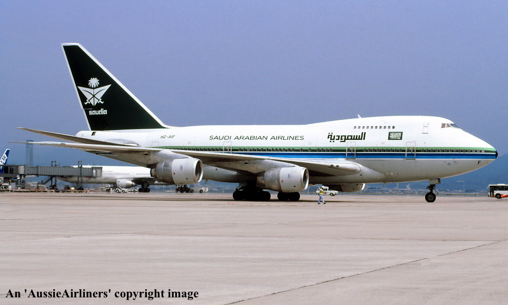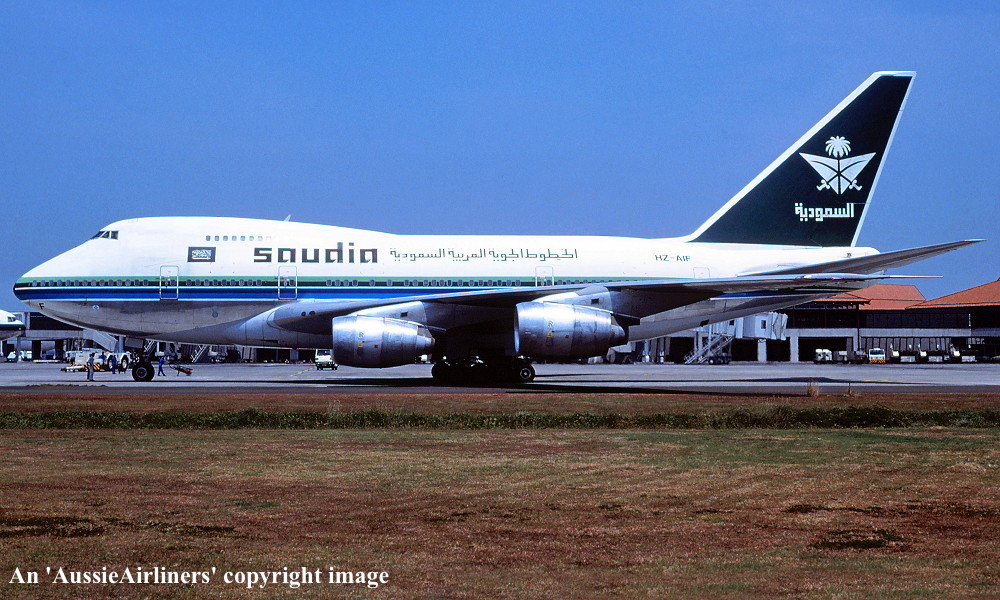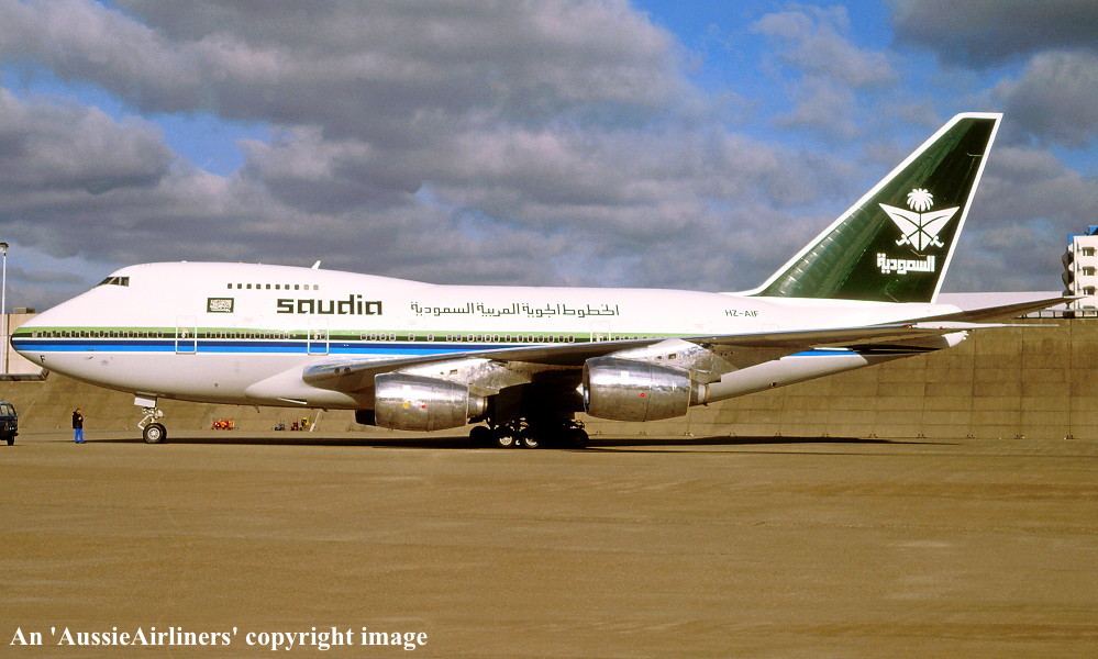 HZ-AIF. Saudi Arabian Airlines - in the original livery at Osaka Airport, August 1996. (R. N. Smith Collection Copyright Image 4635-261.) |