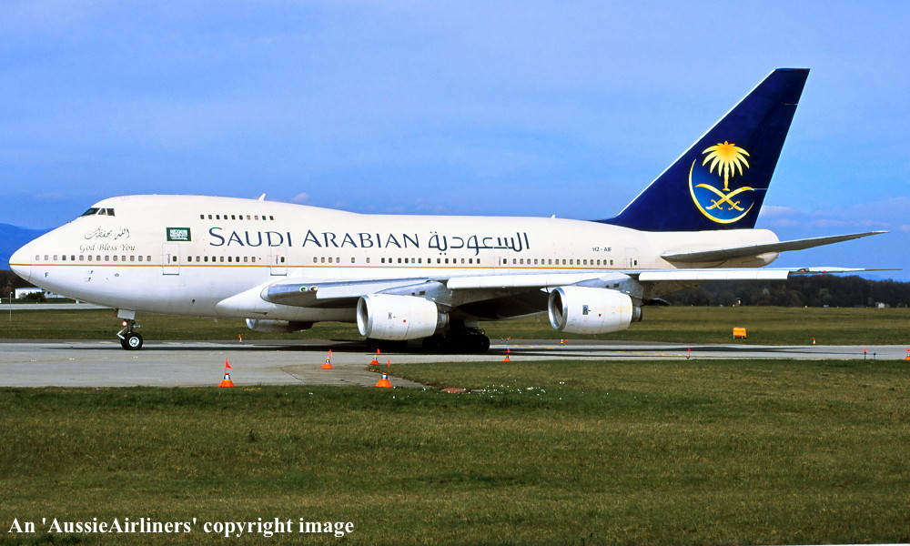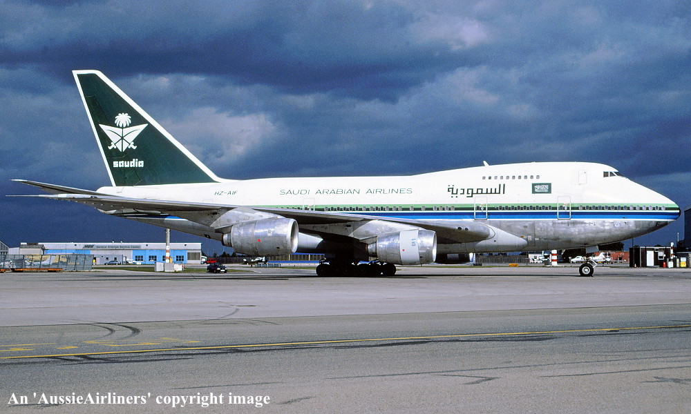 Saudi Arabian Airlines ordered two B-747SPs for use on its very long range routes, notably the proposed non-stop service from Jeddah to New York. The first aircraft, the thirty-ninth B-747SP to be constructed, was ordered on December 19, 1979. Powered by Rolls Royce RB211-524CS engines it was rolled out at the Boeing plant at Everett on May 13, 1981. Entered onto the Saudi Aircraft Register as HZ- AIF it flew for the first time on June 04, 1981. Accepted at Paine Field on June 23, 1981 it was configured to seat 18 First Class, 26 Business Class and 222 Economy Class passengers. It operated the first Jeddah - New York service on July 02, 1981. It was not long before this service was increased to four non-stop flights per week. This aircraft was observed at Zurich Airport on August 17, 2002 in the new Saudi Arabian Airlines livery. Over the years this aircraft has been used as a VIP transport for members of the Saudi Royal Family and their guests and has been observed and photographed at many varied locations. It still earns its keep flying to this day in the current livery. |