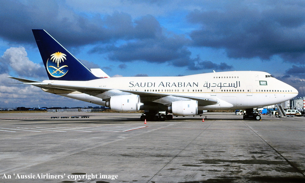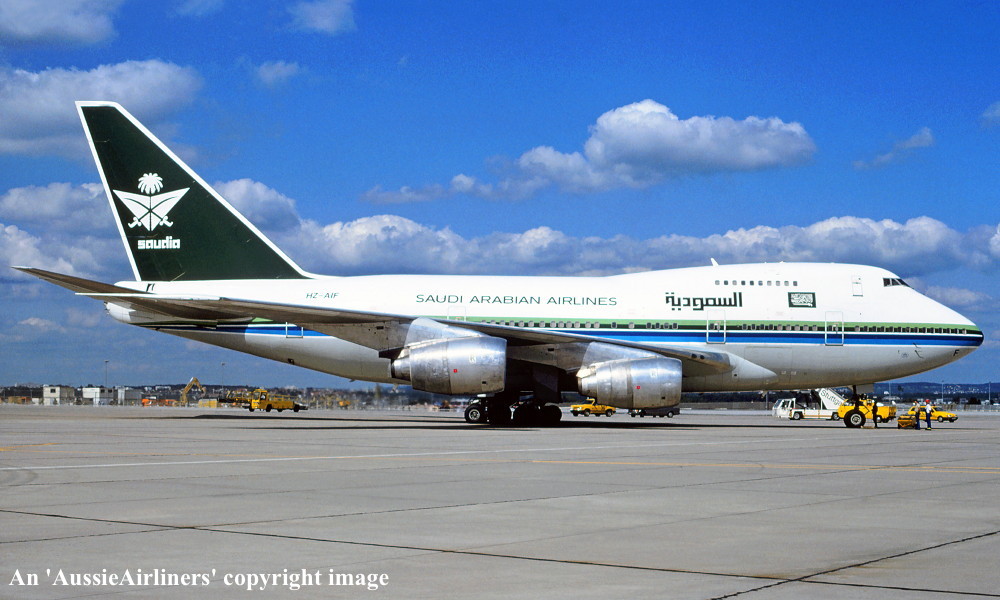 HZ-AIF. Saudi Arabian Airlines - in the original livery at an unknown airport, August 1995. (R. N. Smith Collection Copyright Image 4635-267.) |