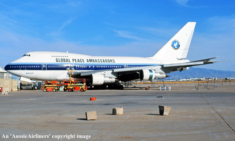 With China Airlines continuing to experience increasing passenger numbers it decided to acquire a fourth B-747SP to add to its fleet. This order was announced in May 1981. The aircraft, the forty-third Boeing 747SP to be built, was the last passenger configured 747SP as the last two airframes were built as V.I.P. aircraft. It was rolled out of the Boeing plant at Everett, Washington on May 24, 1982 with Pratt & Whitney JT9D-7A engines. Entered onto the United States Aircraft Register as N4522V it flew for the first time on June 10, 1982. The interior featured tapestry designs from the Ming Dynasty which symbolised good luck. Configured to seat 18 First Class, 32 Business and 231 Economy Class passengers it was accepted by Wilmington Trust Company at Paine Field on June 15 before being leased to China Airlines on June 29, 1982. This aircraft made history on February 19, 1985 when it survived an amazing uncontrolled descent from its cruising altitude of 41,000 feet to just over 9,000 feet on a non-stop flight from Taipei to Los Angeles. Over the previous five days flight crews had experienced a loss of thrust in the number 4 engine during routine flights. However when this occurred on February 19 the aircraft's captain made a fatal error in judgement. As the thrust decreased on the starboard side the aircraft's automatic pilot struggled to maintain its preprogrammed flight parameters. With the aircraft wanting to swing to starboard the autopilot was inputting control responses to maintain level flight. When the captain disconnected the autopilot to begin a manually controlled descent to a lower altitude, the aircraft immediately flick-rolled and pitched nose down. This manoeuvre was totally unexpected by the flight crew who had not realised that the aircraft had already assumed such a dangerous attitude before the autopilot's disconnection. The flight crew immediately became disorientated, not only by the strange instrument readings confronting them but also by the fact that as they were flying in and between cloud layers, a discernable horizon was not visible. It was only when the aircraft descended into clear sky below the cloud base that the flight crew were able to regain visual orientation and arrest the uncontrolled descent. With control responses being sluggish the captain elected to divert to San Francisco Airport for an emergency landing which was successfully accomplished. On inspection after landing it was found that the airframe had sustained extensive damage. The outboard main landing gears doors had been ripped off, the port outboard aileron was bent, approximately 15 feet of the left horizontal stabiliser including the outboard elevator had been torn off, approximately 10 feet of the right horizontal stabiliser and half of its elevator was missing and the A.P.U. in the tail had been torn from its mountings. Of the 274 persons on board only two received serious injuries requiring transfer to a hospital while another 10 required treatment to minor injuries. At the time of the accident the aircraft had only flown 10,193 hours. The aircraft was repaired at San Francisco Airport and returned to service on April 25, 1985. It was leased to Mandarin Airlines on January 01, 1997. It was observed at Tokyo's Haneda Airport on February 02, 1997 in the full Mandarin livery. By October 1997 it was seen at Hong Kong in an all-white livery. This lease was terminated on December 31, 1997 and the aircraft returned to Sanwa Business Credit. It was then observed at Las Vegas on January 23, 1998 in the all-white livery and without titles. By April the aircraft had been placed in storage as Las Vegas with all engines sealed. It remained stored until sold by Fleet Bank to Mr K. A. Paul, a christian preacher originally from India but now a naturalised American citizen on December 18, 2001. Through his foundation, Global Peace Ambassadors, funds were acquired to purchase this aircraft so that missions to various Third World countries could be flown to deliver aid to disaster areas and to people in need. It was ferried Las Vegas - Amarillo - Harrisburg on April 02, 2002 to undergo maintenance by Stambaugh Air Service. When complete a new airworthiness certificate was issued on April 30, 2002 to Global Peace Initiative Inc. It was then ferried to Tucson, Arizona for further maintenance and refurbishment. It was test flown at Tucson on February 13, 2004 and declared operational by March 04, 2004. During 2004 and 2005 various flight within the United States and to some overseas countries were undertaken. However on July 18, 2005 the F.A.A. suspended Global Peace Ambassadors's Operating Certificate, citing numerous problems with the aircraft. The aircraft was at that time parked up at Thunder Bay Airport, Canada. It departed Thunder Bay on December 16, 2005 for Tijuiana, Mexico for servicing by Matrix, a heavy maintenance facility. It was observed parked at Tijuana in front of the Avolar hangar on December 17, 2006 with no evidence of any work having been carried out on it since it arrived. On February 01, 2007 the aircraft was advertised for immediate sale. Over the next five years this aircraft has been moved around the Avolar hangar complex, sometimes it has even been pulled inside and the hangar doors closed. From all reports this aircraft seems to be progressively deteriorating and may never fly again. It was reported to be sitting outside the Avolar hangar on the north side of the airport on September 28, 2011 in a poor condition. This could be a consequence of the Evangelical Council for Financial Accountability terminating the membership of Paul's organisation in 2005 for failing to meet the required financial accountability and governance standards required by all such organisations. |