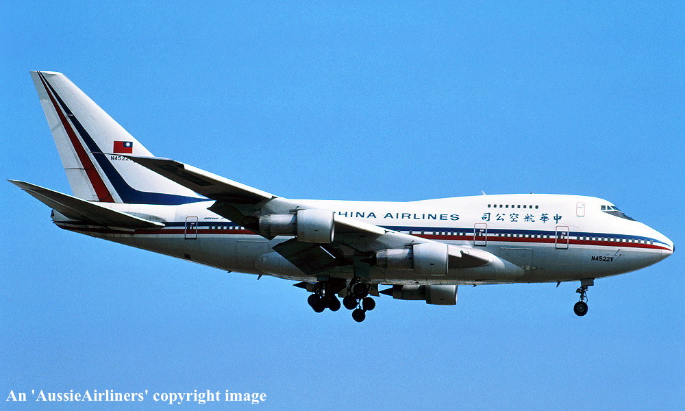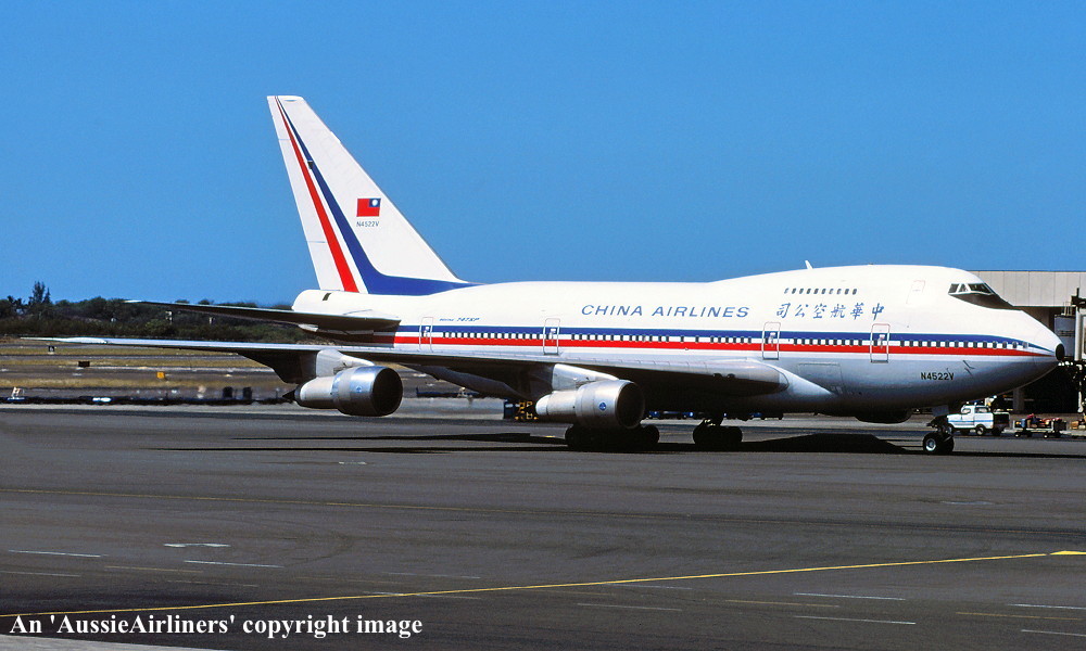 N4522V. China Airlines - in the standard livery at an unknown airport, date unknown. (R. N. Smith Collection Copyright Image 4635-616.) |