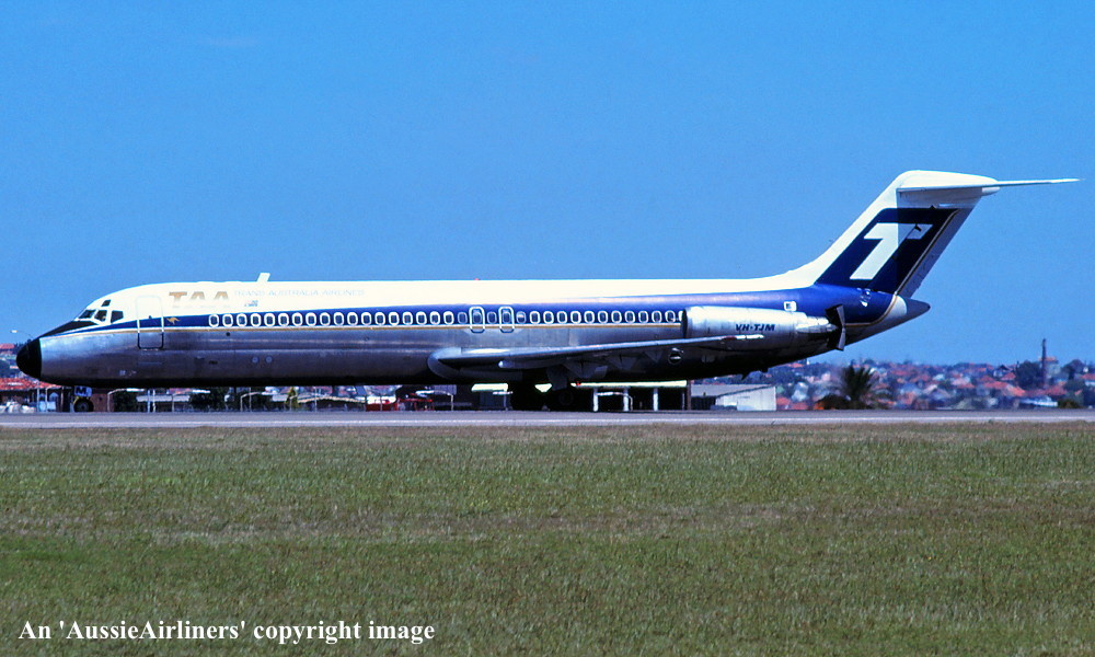 VH-TJM. TAA Trans Australia Airlines - 'Robert Towns' in the standard livery at Sydney Kingsford Smith Airport, January 1979. (R. N. Smith Copyright Image 1135-301.) |